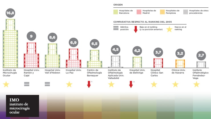 D’aquesta manera, l’IMO es converteix en un dels únics tres centres privats que puja al més alt del rànquing en el seu terreny, juntament amb la Clínica Universitaria de Navarra en el camp de l’otorinolaringologia i la Fundació Puigvert en urologia.