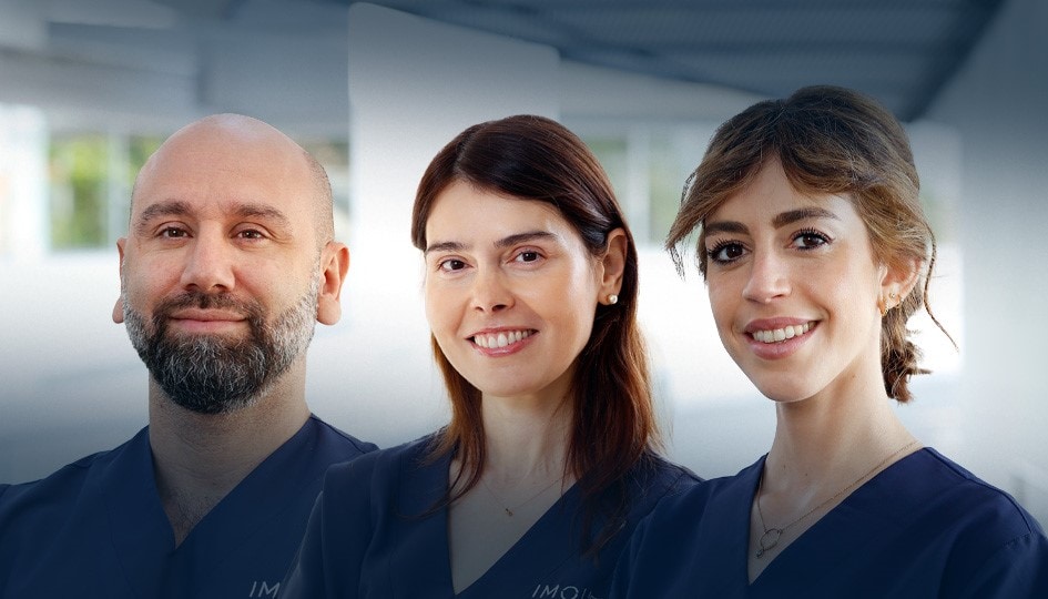 Tres metges experts en estètica oftalmològica i dermatològica formen part de l’equip d’IMO Antiaging: el Dr. Amro Kaiyali, la Dra. Isabel Mayo i la Dra. Rebeca Rosés.