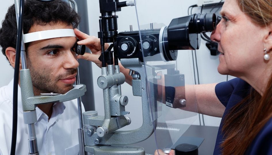 Una de las personas participantes en el estudio, llevando a cabo una revisión ocular en las consultas de IMO Grupo Miranza Barcelona.