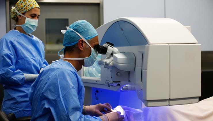 During surgery, the cooperation of the patient is required to keep looking at the microscope light. The surgery takes around five minutes and, in general, it is performed under topical anaesthesia, i.e. anaesthetic drops, meaning that there is no need to cover the eye after surgery, and the patient can see with the eye when leaving the theatre.
