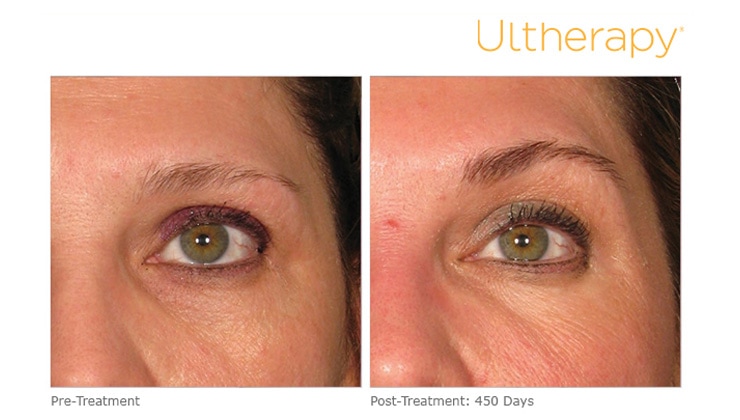 Antes y después del lifting no quirúrgico Ultherapy para lograr una elevación natural y efectiva de las cejas.