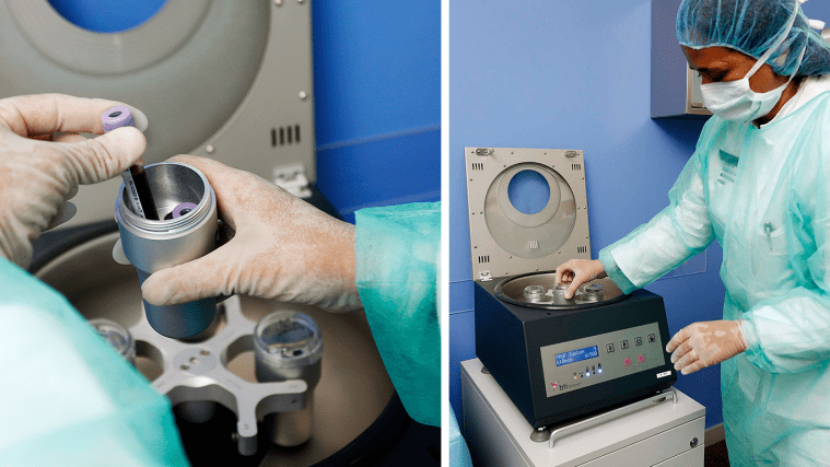 - Se introduce la sangre del paciente para separar los componentes sanguíneos y conseguir aislar el plasma y las plaquetas.