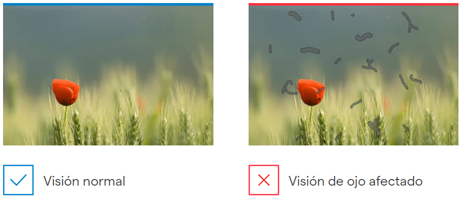 Se trata de diminutos trocitos de sustancia gelatinosa que se forman en el humor vítreo, el líquido transparente que llena el interior del ojo.